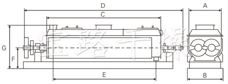 槳葉干燥機的殼體為W型,殼體內一般安排二到四根空心攪拌軸。殼體有密封端蓋與上蓋,防止物料粉塵外泄。